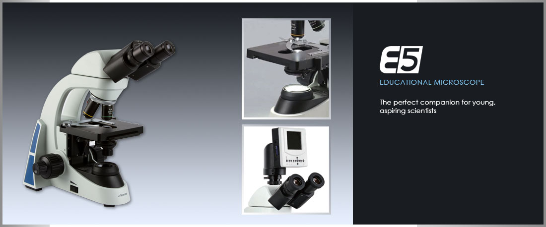 The new E-5 microscope is the perfect companion for the young scientists targeting a wide range in the educational market. Small and compact with excellent optics, it includes a eyepiece pointer as a standard feature to assist with training. The microscope is versatile and easy to operate and its internal battery makes it easy to use in the field for up to 21 hours. Model |